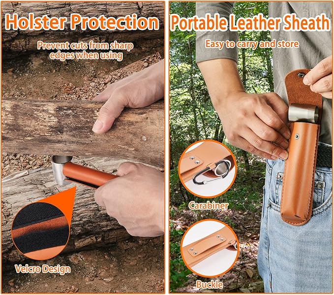 - Safe and Portable: The settlers wrench comes with a handheld leather protective sheath and a leather storage pouch, allowing you to hold it more comfortably and store it more conveniently. Our leather storage pouch features a carabiner and a buckle, making it easy to slip into your pocket or attach to your belt