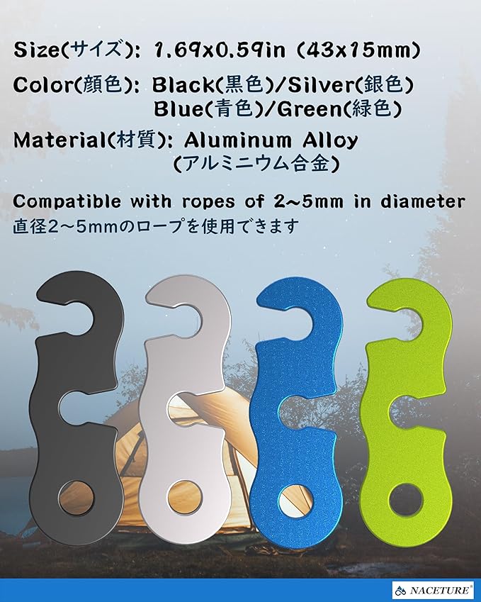 - ✅HIGH-QUALITY AND DURABLE ROPE TENSIONER - Replaces the cheap plastic cord tensor you already have on your camping and outdoor equipment, and say hello to these amazing, compact, and durable guy lines tensioner tent cords made of quality aluminum alloy which is ultralight, and convenient to carry in your backpack on a camping.