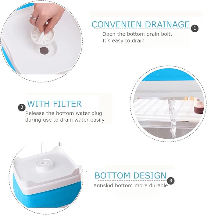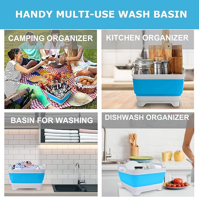- 【Plug & Drainer】: Camping sink, kitchen sink basin is great for washing dishes, food, bucket with drain, beverage tub, laundry soaking. The collapsible dish drainer is good for basin kitchen, wash bin laundry.