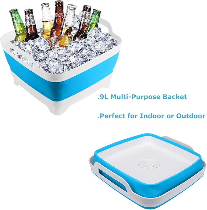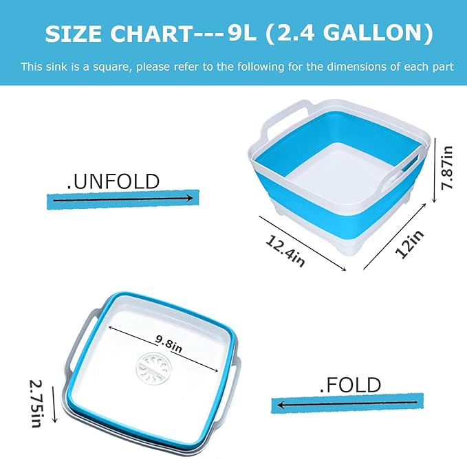 - 【Versatile & Multifunctional】: Foldable washing basket, dish tub RV sink size 9L, Collapsible dish basin with Draining Plug. Easy to fold, take your camping wash station. Collapsible foot bath.