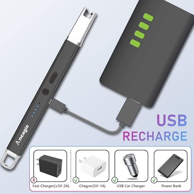 - 【LED Flashlight & Solid Shell】~ when you are in a dim area, the built-in LED light really comes in handy! The Aneagle candle lighter is superior to other regular electric lighters because of its unique flashlight, not to mention the impressively solid shell.