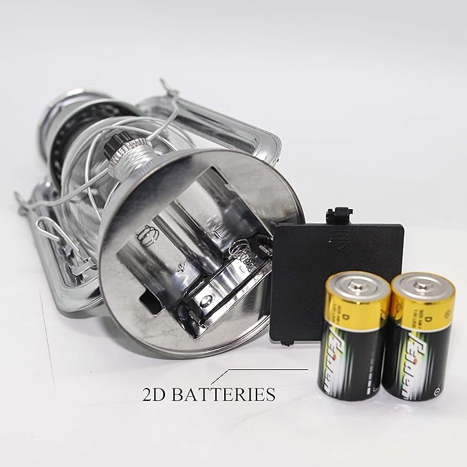 - BATTERY OPERATED: Each vintage lanterns battery powered led by 2 D batteries (not included), the battery life varies based on usage. Without wiring limited.This lantern is great useful for camping when you make your way around the campsite and your tent easily in the dark. Please note when in extreme weather conditions, the lamp should be placed indoors to prevent glass from breaking.