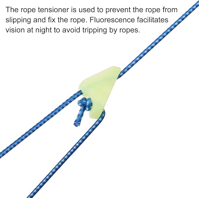 - The rope tensioner is used for adjusting the rope, preventing the rope from slipping and fixing the rope. Widely used in various places, such as beach, sand, lawn, soil, etc. for fixing your tent, sleeping bag, picnic mat, backpack, objects