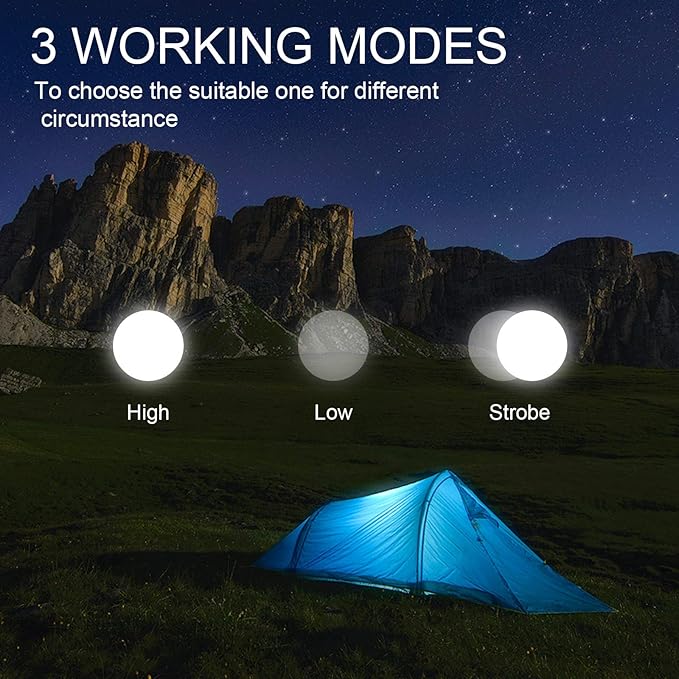 - 【3 Working Modes】3 working modes with fully bright, semi bright and strobe can be adjusted by long press switch. fully bright and semi bright can satisfy the daily usage and the strobe mode has an alarm effect.