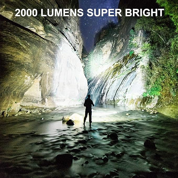 - 【High Lumens Bright LED Flashlight】The advanced LED technology makes this flashlight out put to 2000 lumens. The bright LED flashlight is suit for Home Usage, Camping, Hiking, Construction, Ordinary Maintenance, Mountaineering Expedition.