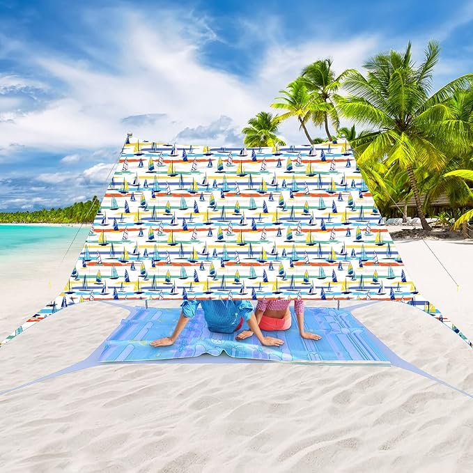 - Large Family Sun Shelter - Zeepair beach tent sun shade canopy‘s four 6.6FT tall aluminum poles keep entire canopy area stays at full height that increasing the shaded area by 50%.10x10FT is enough for 6-8 people. 7x7FT is enough for 3-6 people. It holds up well in the wind because of the extra big sand anchors and high quality rust-proof aluminum poles.Providing enough space for couples, families and friends' party. FOUR CONVENIENT FAMILY SIZES. Choose the ideal that works for your family needs