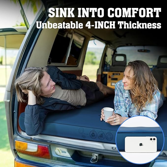 - 𝐍𝐎𝐓𝐇𝐈𝐍𝐆′𝐒 𝐌𝐎𝐑𝐄 𝐈𝐌𝐏𝐎𝐑𝐓𝐀𝐍𝐓 𝐓𝐇𝐀𝐍 𝐀 𝐆𝐎𝐎𝐃 𝐍𝐈𝐆𝐇𝐓′𝐒 𝐒𝐋𝐄𝐄𝐏 - Hikenture ultra thick camping pad is a game changer whether for camping, car camping or road trips. Our camping mattress with 4 INCH THICK soft foam layer provides just the right amount of support for side, back or stomach sleepers. The polyester surface feels gentle to your skin and makes lowest noise during sleep.