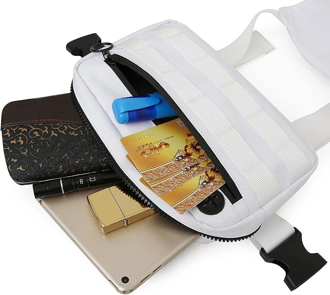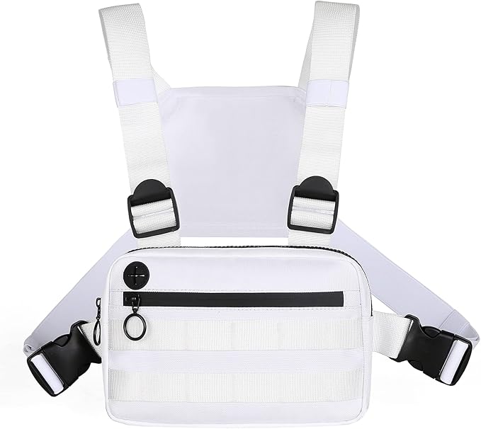 - 【Appropriate Size】The chest bag size is 9.0*6.3*2.0 inches, it can accommodate items that need to be carried with you for outdoor sports, such as mobile phones, keys, watches, wallets, skipping ropes, snacks, etc. The appropriate size is freeing your hands and will not increase the burden during exercise