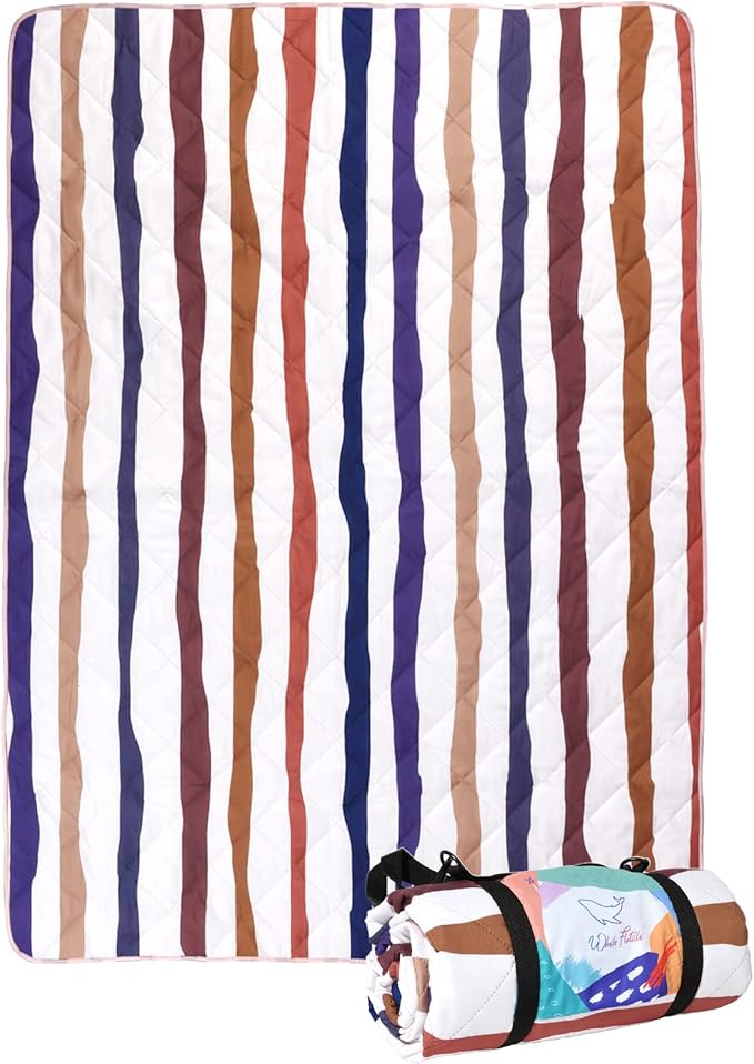 - Material: Whale Flotilla sandproof picnic blanket adopts 3-layer design, with soft brushed fabric on the top, microfiber padding in the middle, and long-lasting 210D waterproof oxford on the bottom. Sophisticated quilting technology makes layers tightly stitched, not easy to wear down and fall off.