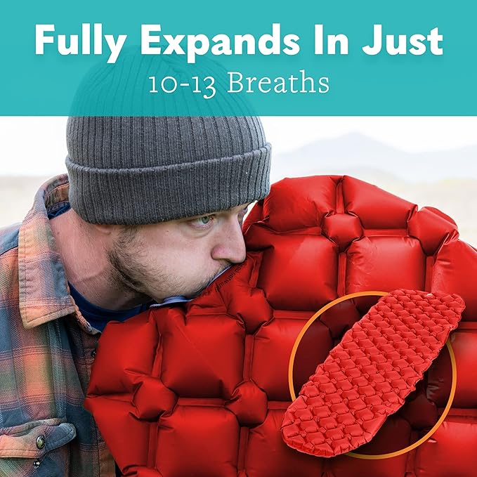 Sleeping Pad for Camping - Ultralight Sleeping Mat for Camping, Backpacking, Hiking - Lightweight, Inflatable Air Mattress - Compact Camping Mats for Sleeping-red with Black back-1pk
