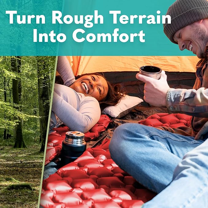 - TOUGH, DURABLE, LARGE AND COMFY SLEEPING PAD - made with the strongest outdoor-grade material, this sleeping pad is for any weather conditions. Able to accompany you on any type of adventure, this camping mattress pad inflates to an impressive size of 74" X 22" and will give you the comfort you need.