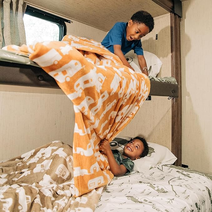 - Unique Design: Greige blanket features a Camco brand RV print