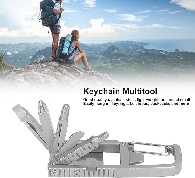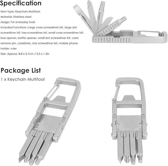 - DURABLE STAINLESS STEEL: Keychain multitool is made of good quality stainless steel, resistant to rust, non metal smell, all metal structure is durable