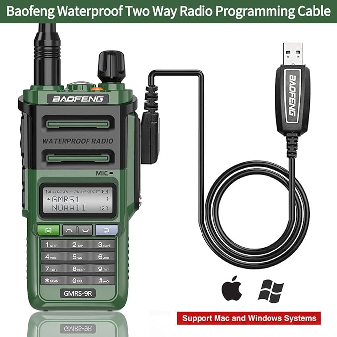 - Professional GMRS Radio:GMRS-9R has 30 GMRS channels + 11 NOAA weather channels,You can easily add new channels and change settings on the go by the PC and keypad menu programs, 155 Privacy Codes (50 CTCSS codes/ 104 DCS codes) ,Reduce interference. FFC ID: 2AJGM-P52UV.