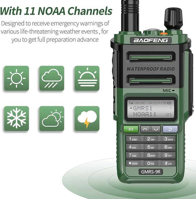 - IP67 Waterproof Feature:9R Plus upgrade version,The GMRS Radio with better waterproof and dustproof capabilities(Not diving),can meet the needs of outdoor sports, camping, mountaineering etc in the bad weather, which ensures the reliability of the walkie-talkie in wet environments.