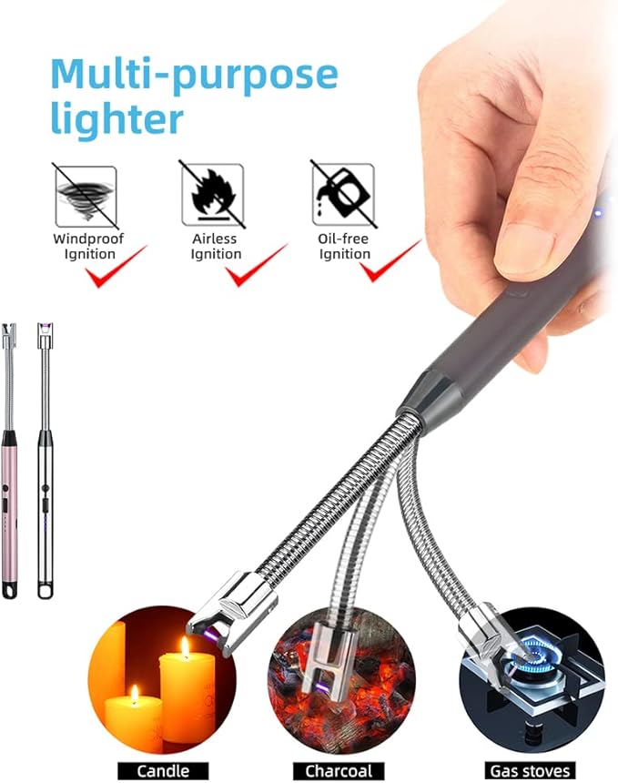 - 【Windproof And Flameless】:The electric lighter adopts plasma arc windproof and flameless technology,no flame,no butane, no trouble. The candle lighter is suitable for strong wind and damp environment, the electric candle lighter is an ideal lighting tool for you to use outdoors.Compared with other arc igniters,the noise is lower.