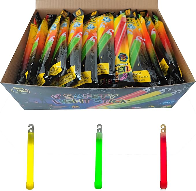 - Industrial-Grade Quality 90-Piece Bulk Pack 6-Inch Length Ultra-Bright Illumination 12+ Hour Glow Duration Emergency Preparedness Camping Essentials Hurricane Supplies Earthquake Ready Survival Kit Component Water-Resistant Design Non-Toxic Material Easy to Use Three Vibrant Colors Long Shelf Life Reliable Lighting Solution