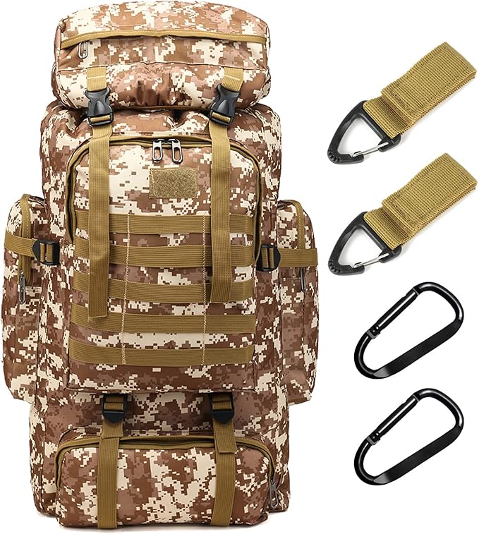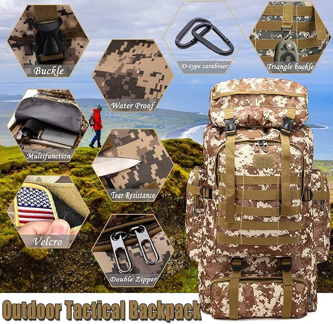 70L Waterproof Hiking Daypack Large Hiking Backpack, Hunting Camping Rucksack Backpack for Men Outdoor Sports Backpack (Desert camouflage)