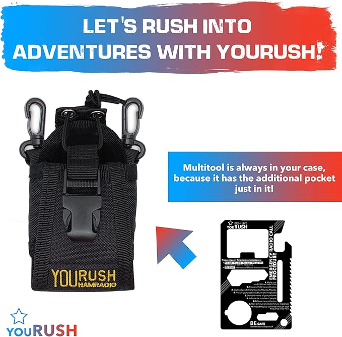 - Exclusive design Baofeng pouch youRUSH and hand strap youRUSH! Be different from everyone. Must-have for camping, tactical sports, hiking, fishing etc.