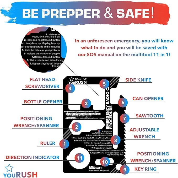 - Be prepared & safe - SOS instruction on the multitool the best combination for prepper tool! Prepper accessories got your back for all different adventures & emergency situations