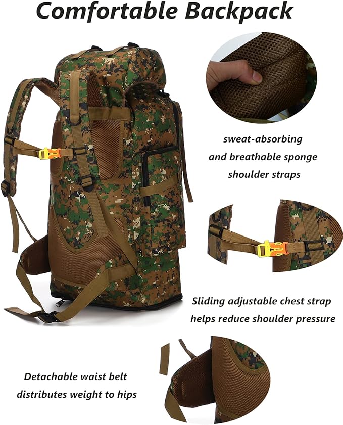 - 【Comfortable Backpack】: Military mountaineering backpack features sweat-absorbing and breathable sponge shoulder straps with airflow channels to keep your back cool and dry. This molle mountaineering backpack features 2cm thick cellular foam padding to relieve shoulder pressure.