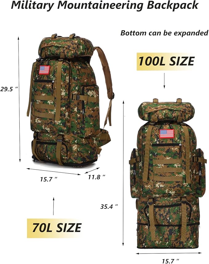 100L Hiking Camping Backpack Tactical Backpack for Men and Women Large Survival Hunting Waterproof Backpack Molle Rucksack Military Camping Backpacking Daypack''