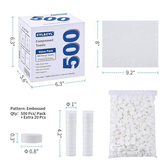 - ✔️Value Pack - 500 per box + 2 plastic carry cases holding additional 20 towels. That is a total of 520 compressed towels in each box!