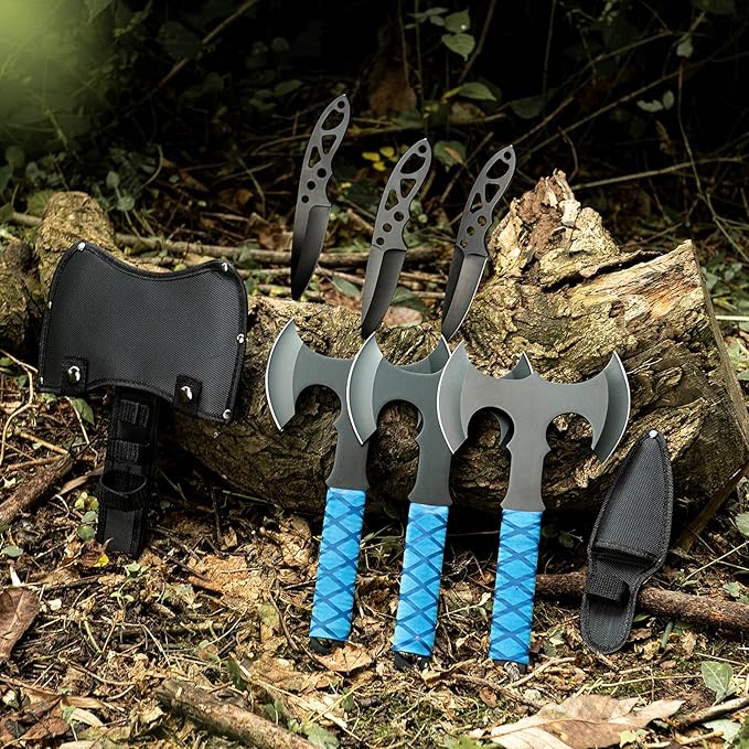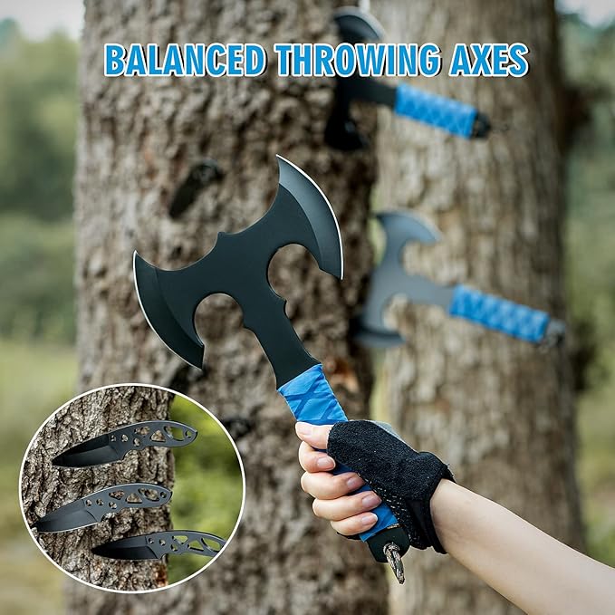- 3 Stainless Steel Double Headed Throwing Tomahawks: This Throwing Axe Set comes with 3 Medium Hard Shell Black Double Sided 11" Full Handle Tactical Axes, 3 Throwing Products, Tomahawk Pack