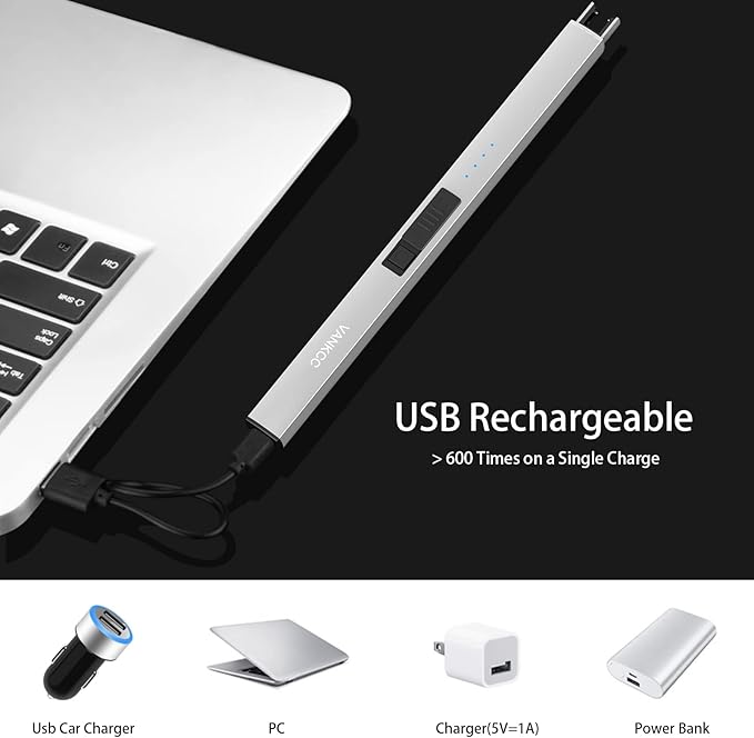 - 【USB Rechargeable & Fast Charging & PORTABLE】 The candle lighter with powerful Li-ion battery can be recirculated 500 times, which is USB rechargeable, reusable and environmentally friendly. The candle lighter comes with a USB C type C charger cable, which will make the lighter get a fast charging. The portable USB cable can connect with computer, socket, power bank etc, so you can charge it everywhere and whatever time.