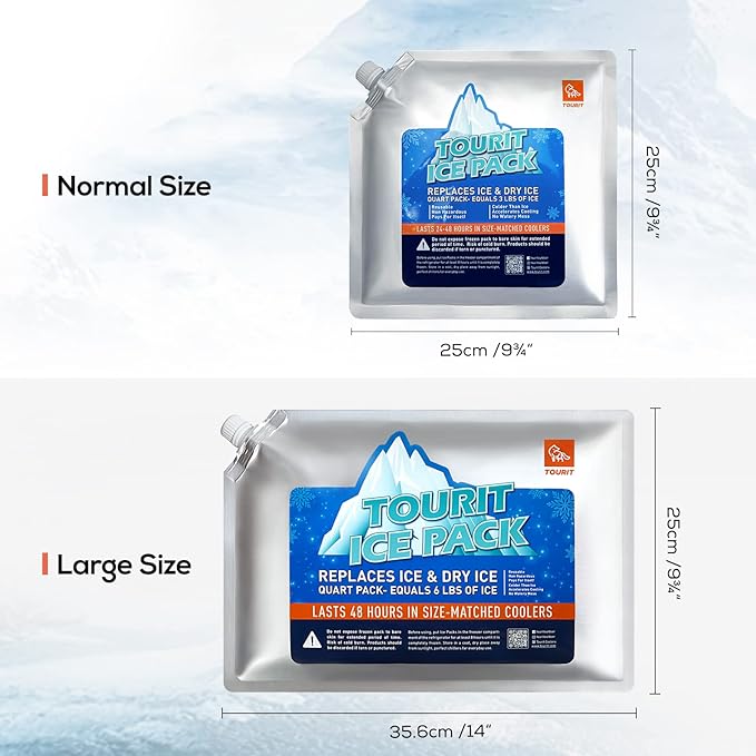 TOURIT Reusable Ice Pack for Coolers Long Lasting Cooler Ice Packs for Cooler Bag Lunch Bags/Boxes, Cooler Backpacks, Freezer Packs for Coolers