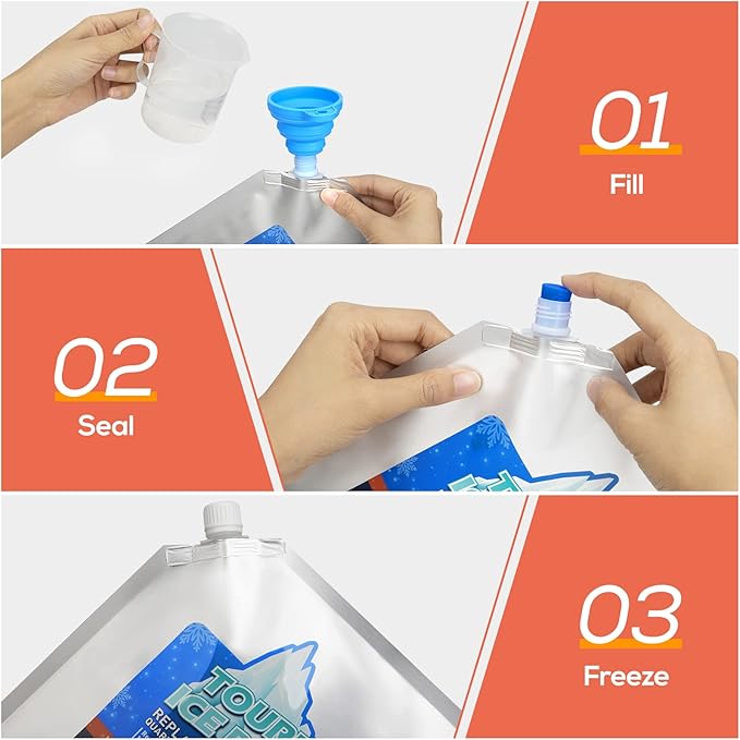 - Easy to use: Simply add water once, don't bother changing the water over and again, before first use, utilize the included funnel to add water once, shake well, screw on the lid, and then freeze until prepared to utilize is okay