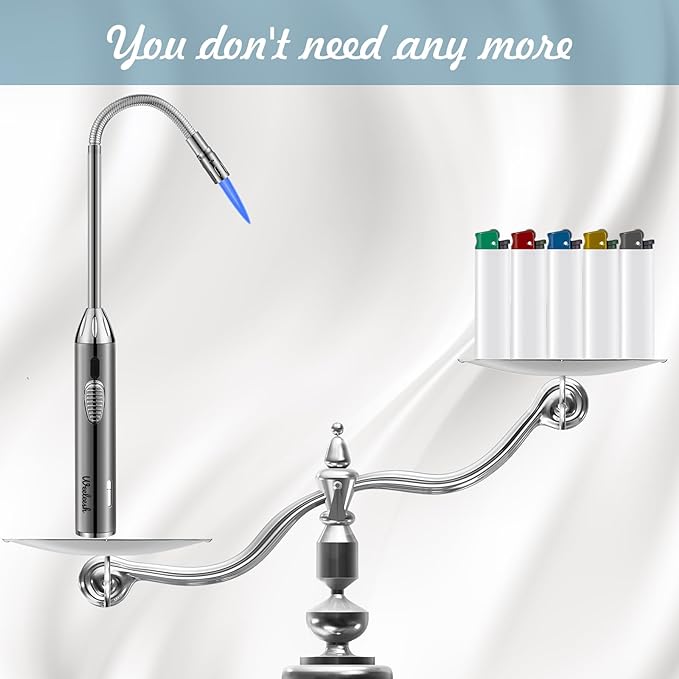- [Multipurpose Lighter & Double Safety Design]:Weeleesh butane lighter gives you double protection and 2 modes to light.Perfect as candle lighter, grill lighter, BBQ lighter, camping lighter, fireplace lighter, fire lighter,gas stove lighter and so on.