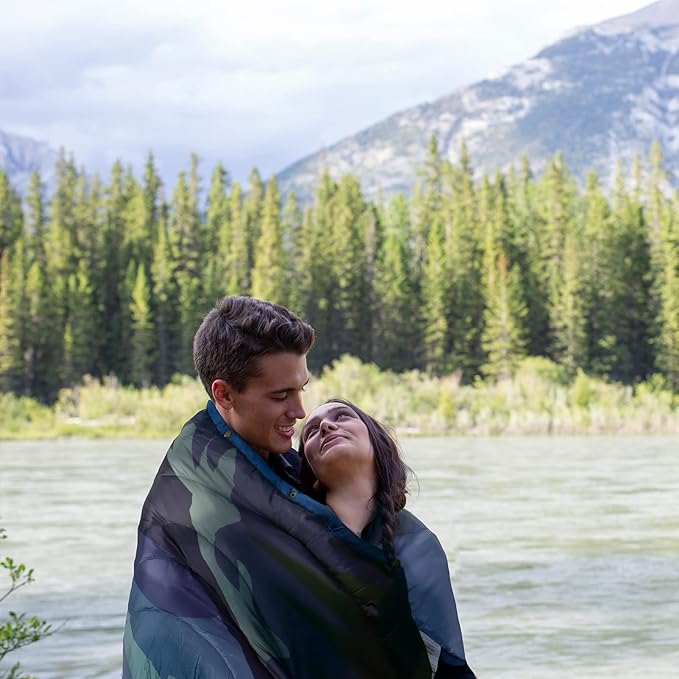 - 【Multipurpose Puffer Blanket & Poncho】 - This is a multi-purpose backpacking blanket ultralight. In addition to being used as a warm camping blanket for sleeping for cold weather, the buttons on both sides combine to be used as a poncho, which is very convenient and can free your hands.
