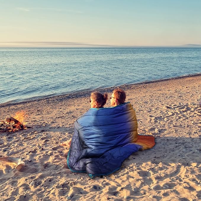- 【Multipurpose Puffer Blanket & Poncho】 - This is a multi-purpose backpacking blanket ultralight. In addition to being used as a warm camping blanket for sleeping for cold weather, the buttons on both sides combine to be used as a poncho, which is very convenient and can free your hands.