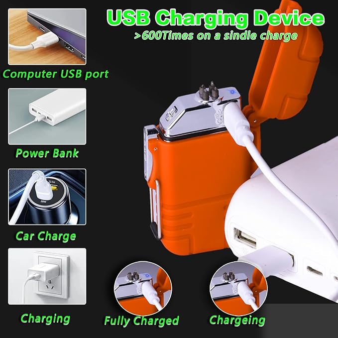 Lighter USB Rechargeable Lighter Outdoor Lighter Mini Lighter High-end Rechargeable Lighter for Garden Outdoor Activities(Orange)