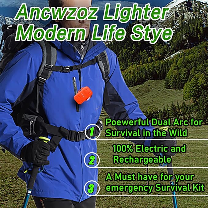 - Multi-purpose ▶Ancwzoz design mini lighter, double arc lighter, durable and anti-drop, carry it with you, wear lanyard neck, trouser pocket to carry.