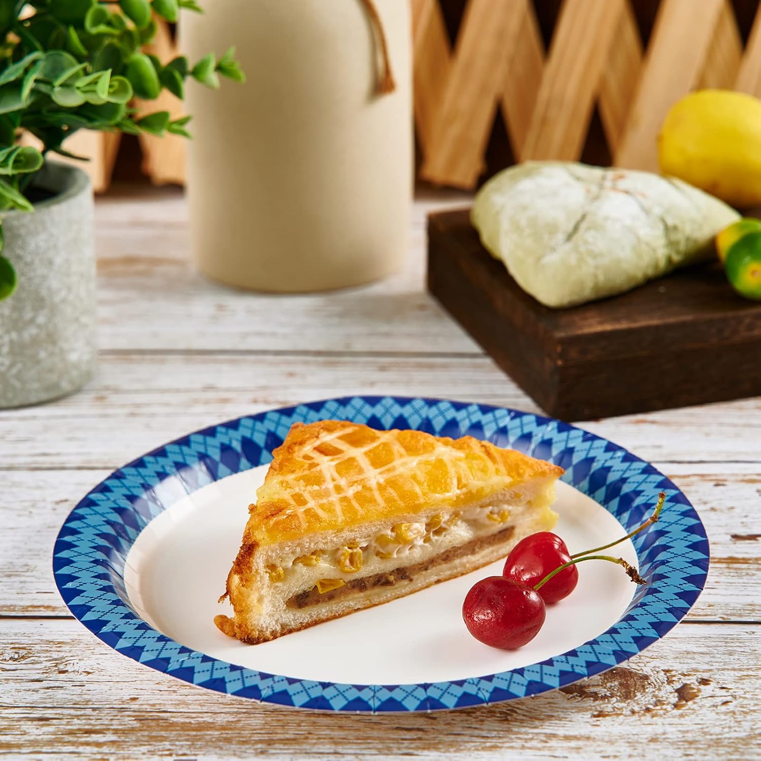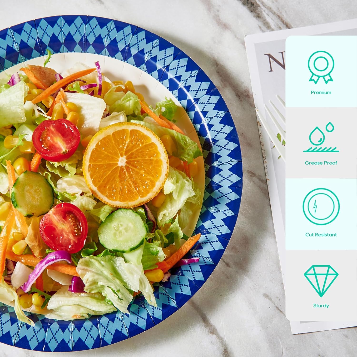 - Everyday disposable paper plates Perfect for dinner parties summer picnics, decorative paper plates with navy pattern diamonds for a variety of themed parties and events
