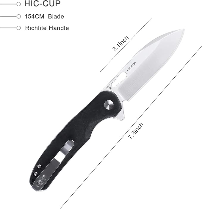Kizer HIC-CUP Folding Pocket Knife, 3.15 In154CM Steel Folding Knife, Richlite Handle Button Knife, Small EDC Knife for Men Women V3606C2