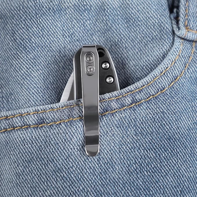- Easy to Carry: Fitted with a reversible deep-carry pocket clip for right or left-handed carry. EDC TOOL KNIFE Blade Length: 3.1 In, Weight: 3.25 oz. Quick and easy access with the convenient pocket clip, and outdoor knife, making it ideal for everyday carry.