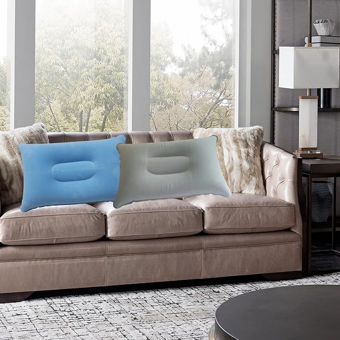 - Package Include:2 Color Inflatable Travel Flocked Fabric Air Pillow.(Grey Light-Blue)