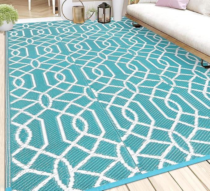 - Reversible Outdoor Rugs: Featuring a classic moroccan pattern on both sides, this 9x12 ft outdoor area rug allows you to instantly refresh your patio, porch, backyard, deck, RV campsite. And this outdoor deck rug is reversible, two-sided design allows you to have two different looks,both sides can blend perfectly with nature and look very full and comfortable.