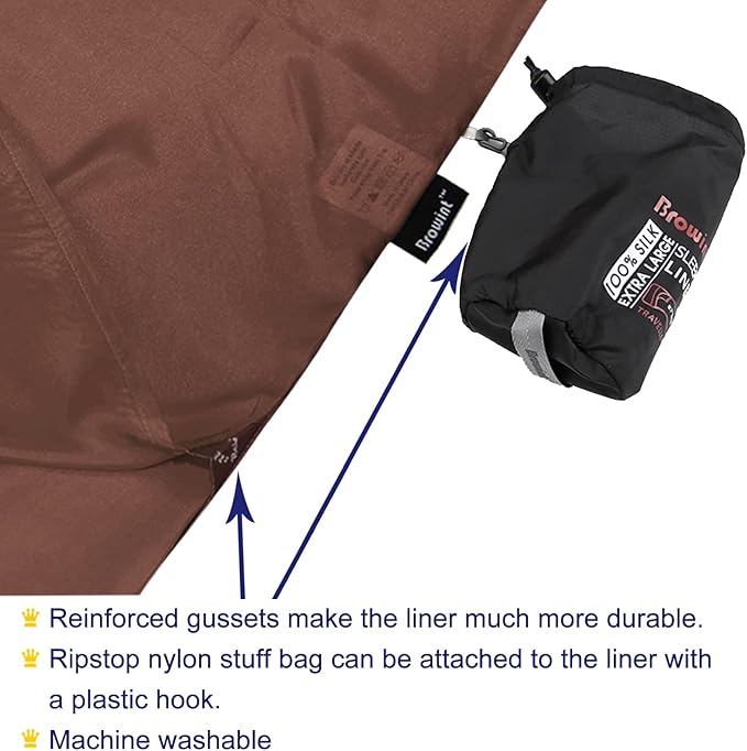 • Silk liner keeps your sleeping bag clean and It’s also ideal for hotels, hostels, travel, camping and sleeping cars. Question again: Is it real silk??? BROWINT: Yes, it is!