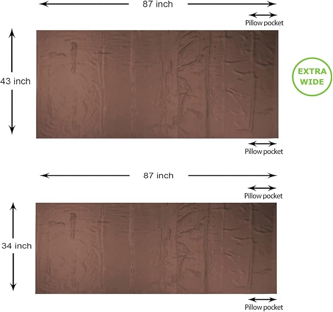 • EXTRA WIDE AND SUPER LIGHTWEIGHT: Two sizes for option: 87”x43” is an extra wide size, which is about 9” wider than a normal single liner. There’s generous space for the tall people to move freely. It weighs only 6.3oz. (180g); The 87"x34" liner weights 5oz. (140g), which is a comfortable size for one person. The liner is compacted in a tiny ripstop nylon stuff bag. With an attached hook on the carry case, you can link it up with the liner after taking the liner out, avoid losing the stuff bag.