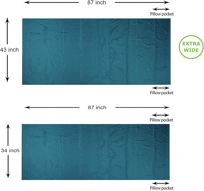 - EXTRA WIDE AND SUPER LIGHTWEIGHT: Two sizes for option: 87”x43” is an extra wide size, which is about 9” wider than a normal single liner. There’s generous space for the tall people to move freely. It weighs only 6.3oz. (180g); The 87"x34" liner weights 5oz. (140g), which is a comfortable size for one person. The liner is compacted in a tiny ripstop nylon stuff bag. With an attached hook on the carry case, you can link it up with the liner after taking the liner out, avoid losing the stuff bag.