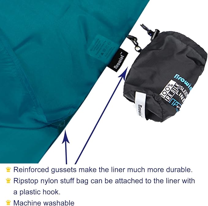 - Silk liner keeps your sleeping bag clean and It’s also ideal for hotels, hostels, travel, camping and sleeping cars. Question again: Is it real silk??? BROWINT: Yes, it is!