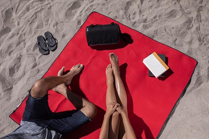• BEST BEACH BLANKET - This large portable picnic blanket measures 59 by 51 inches when open - plenty of room for 2, 4, and more - and folds up neatly into a small 13 by 9 by 4-inch tote