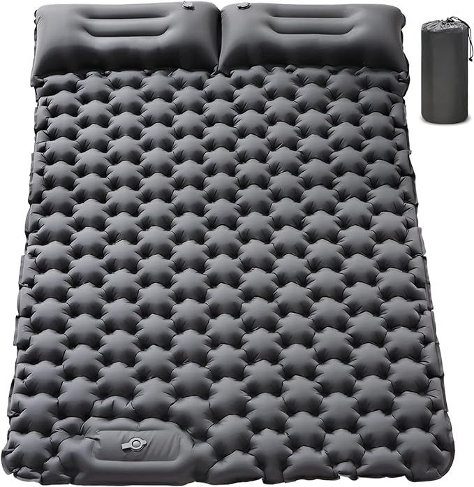 - 【BUILT-IN FOOT PUMP No need for mouth blowing or extra pumping, the ABTOHE Wide Double Sleeping Pad has a built-in foot pump. In just 3 minutes, this thick queen size sleeping pad is inflated by foot, clean and hygienic, and kids can finish inflating it too. Two double air valves on the pillow prevent leaks and allow for quick deflation, simply close the valves before inflating.