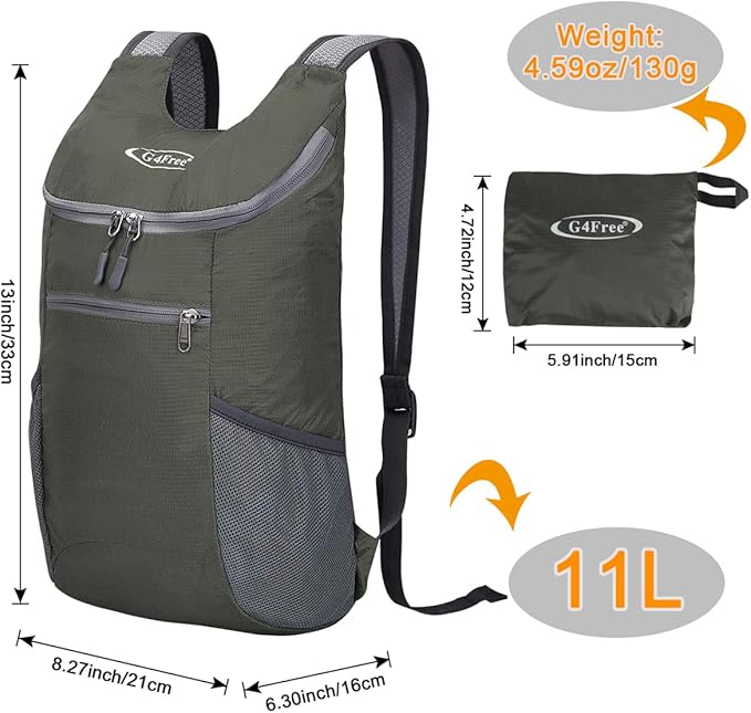 G4Free Lightweight Packable Hiking Backpack for Men Women Small Hiking Daypacks Foldable Shoulder Pack Casual Outdoor Bag 11L