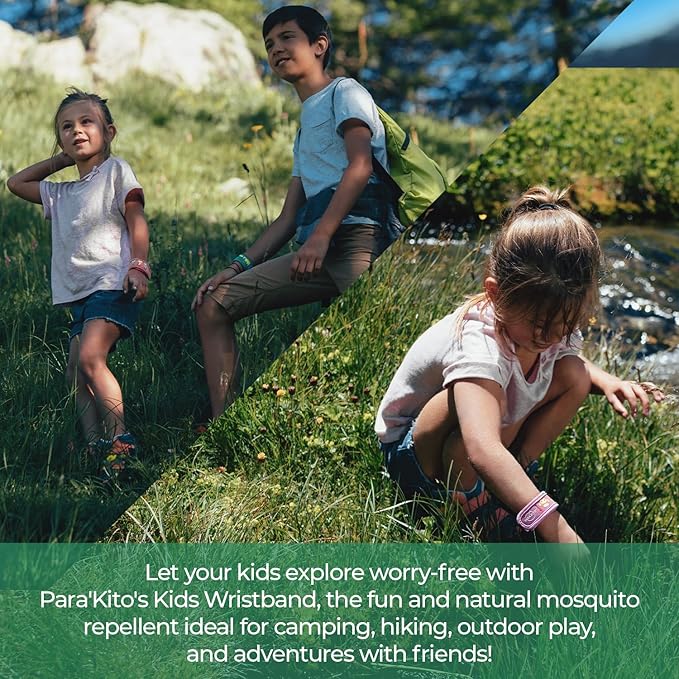 - FUN & STYLISH PROTECTION: Whether strolling through a forest or playing at the pool, PARA’KITO Kid's Wristbands will become your child's best friend; Can be worn around the wrist or ankle; You can even place it beside your sleeping pad for the perfect mosquito-free camping night; The perfect addition to your glamping accessories, or to your hiking & camping gear!