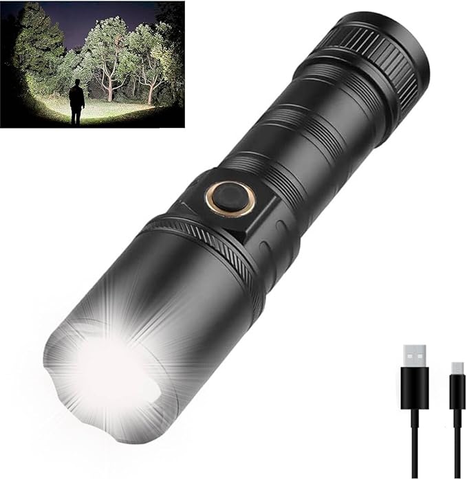 1200000 Lumens Flashlight USB Rechargeable Powerful Super Bright LED Flash Light,Outdoor Waterproof Zoomable Tactical Flashlight Handheld Torch for Emergency,Camping,Hiking